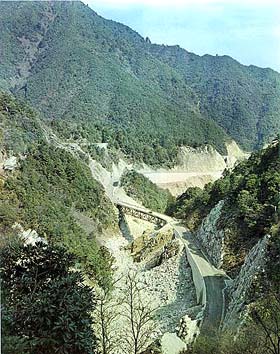 ■右の写真は、建設当時の国道42号線矢ノ川付近