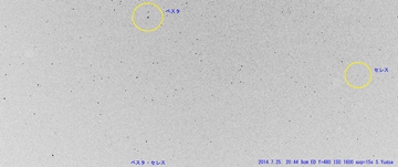 ベスタとセレス(=ケレス):写真「上:7月25日(金)」「下:7月26日(土)」