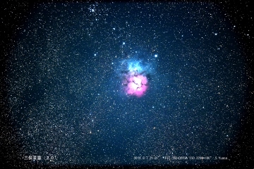 三裂というネーミングは250年前、イギリスの天文学者ジョン・ハーシェルとされています。現在の画像では赤外線も写るためきれいなピンクですが、当時は眼視観測のみだったので、鮮やかな色彩は見えなかったようです。