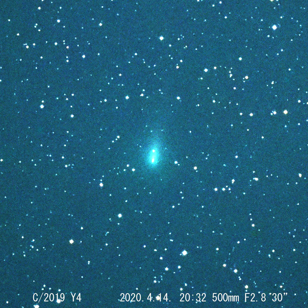 5月末条件が良くなるので、期待して待つことにしましょう。なお、コマの中に写っている上側の輝点は、背景の星です。