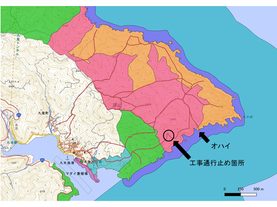 九木崎遊歩道 通行止めのお知らせ(オハイへの道)