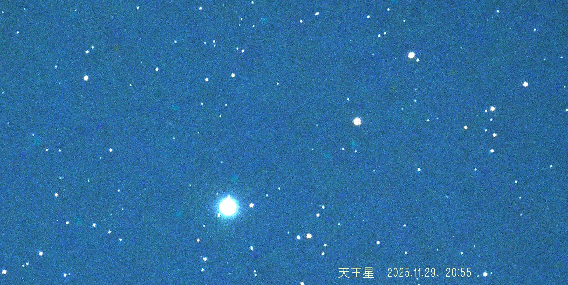 望遠鏡で見るとかなり明るい星なので、すぐわかります。円盤状をした水色っぽい星で、見分けがつきやすい天体です。