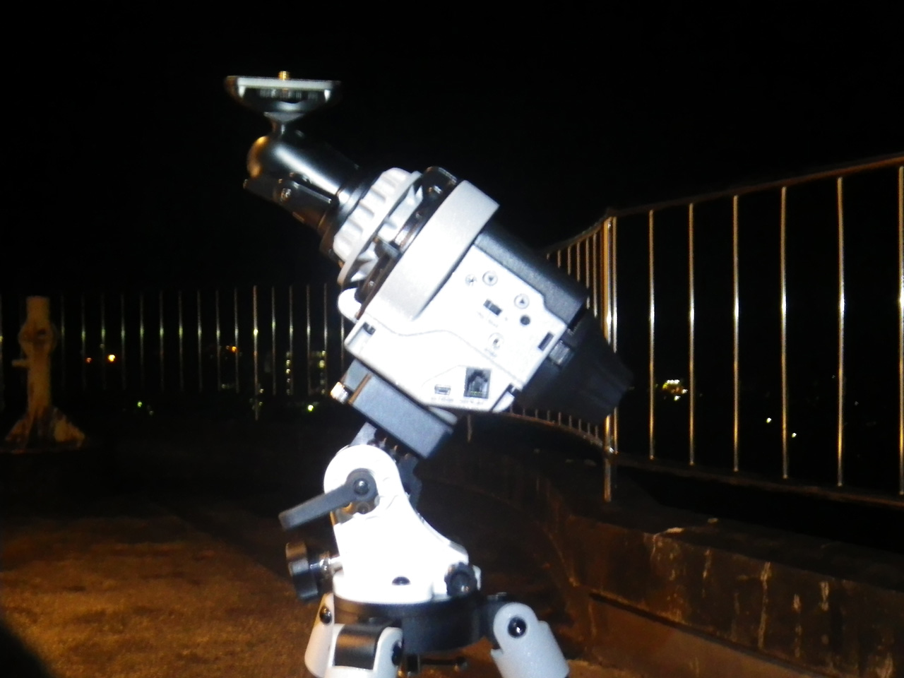 星座撮影では30秒~60秒間星を追いかけます。そのためにモーターのついた傾いた台(赤道儀)を使います。カメラを台の上に固定し方向を決めて、シャッターを押します。