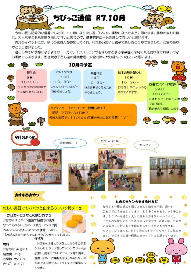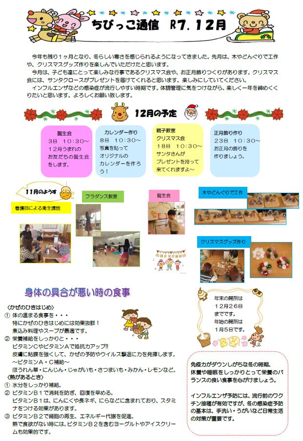 毎月1回発行しています。子育てについての情報や、地域の保育資源の情報などを提供しています。