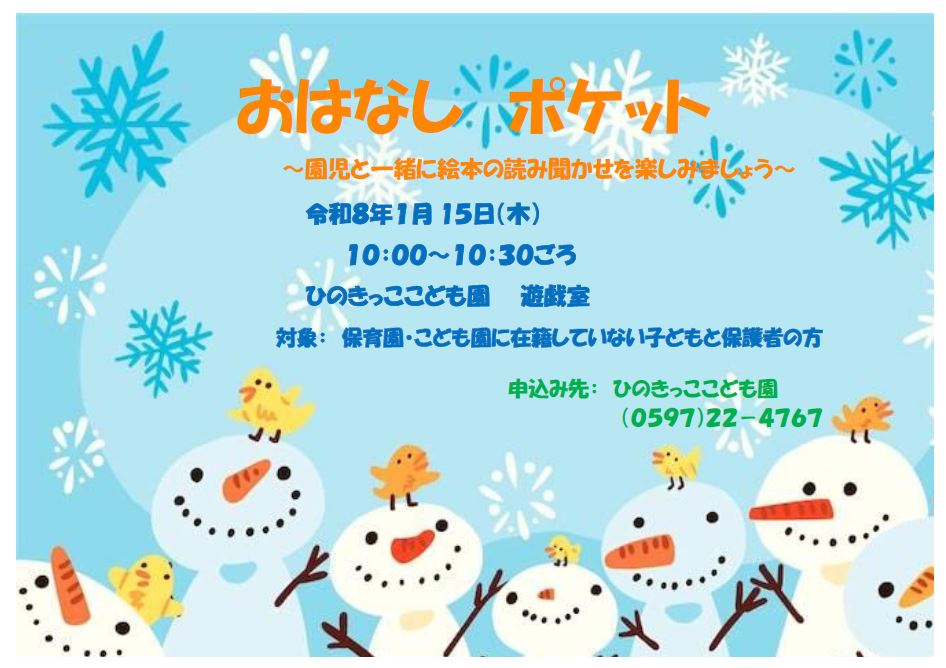 幼保連携型認定こども園 ひのきっここども園 ☆1月15日(木)おはなしポケット 参加者募集中☆