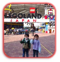 1年間の集大成として、レゴランドへ行きました。現地で3人と待ち合わせ、たろにいが園内を案内してくれました。2人は大学生さんにべったり。時々、「先生のこと忘れてない?」と思うくらい自分たちの世界で「次、何に乗る?」と帰りの時間までた~っぷり楽しみ大満足のようでした。貴重な体験ができて幼稚園生活の思い出の1ページになりました。