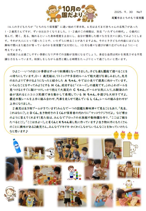 - 施設名 尾鷲市立とちのもり保育園 小規模保育事業所(A型)