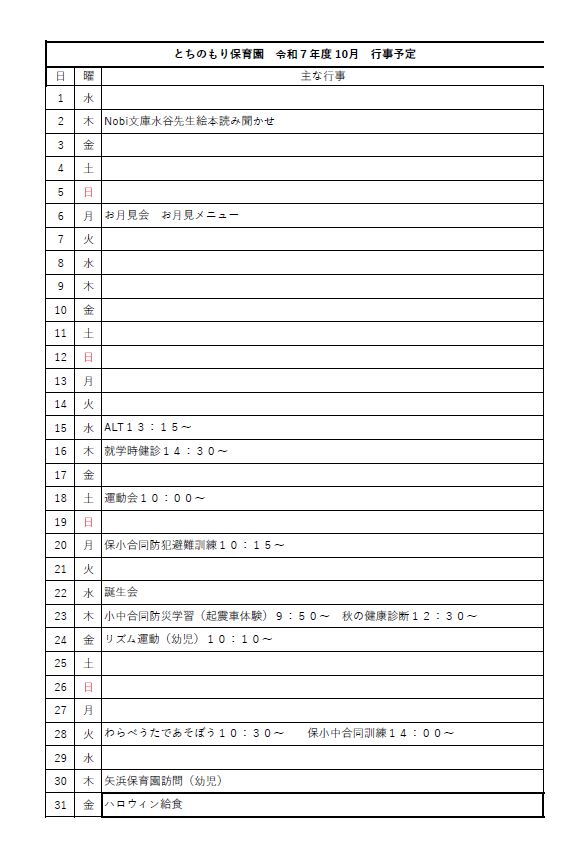 保育時間(土曜日) | 保育標準時間:7時30分~13時30分 保育短時間 :7時30分~13時30分 | 8時30分~13時30分 |