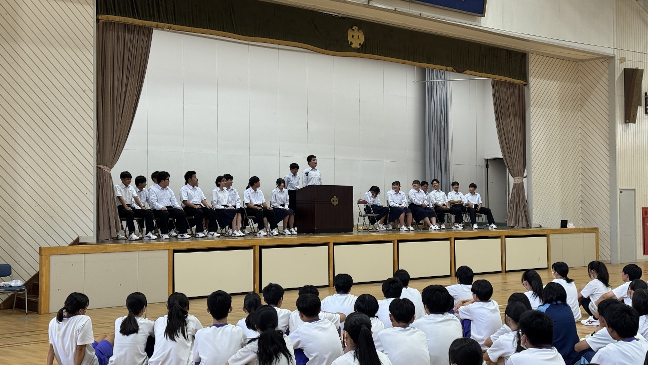 9月22日(月)後期生徒会役員を決めるための立会演説会と選挙が行われました。2・3年生から11名が立候補して、ポスターを作ったり、各教室で自己PRをしてきました。立会演説会では、応援弁士と共に演説を行い、当選した時の公約や尾鷲中学校をどんな学校にしたいかなどパフォーマンスも交えアピールしていました。立会演説会後には、尾鷲市の選挙で使用される投票箱を使って実際に投票を行い、選挙の雰囲気を体験しました。