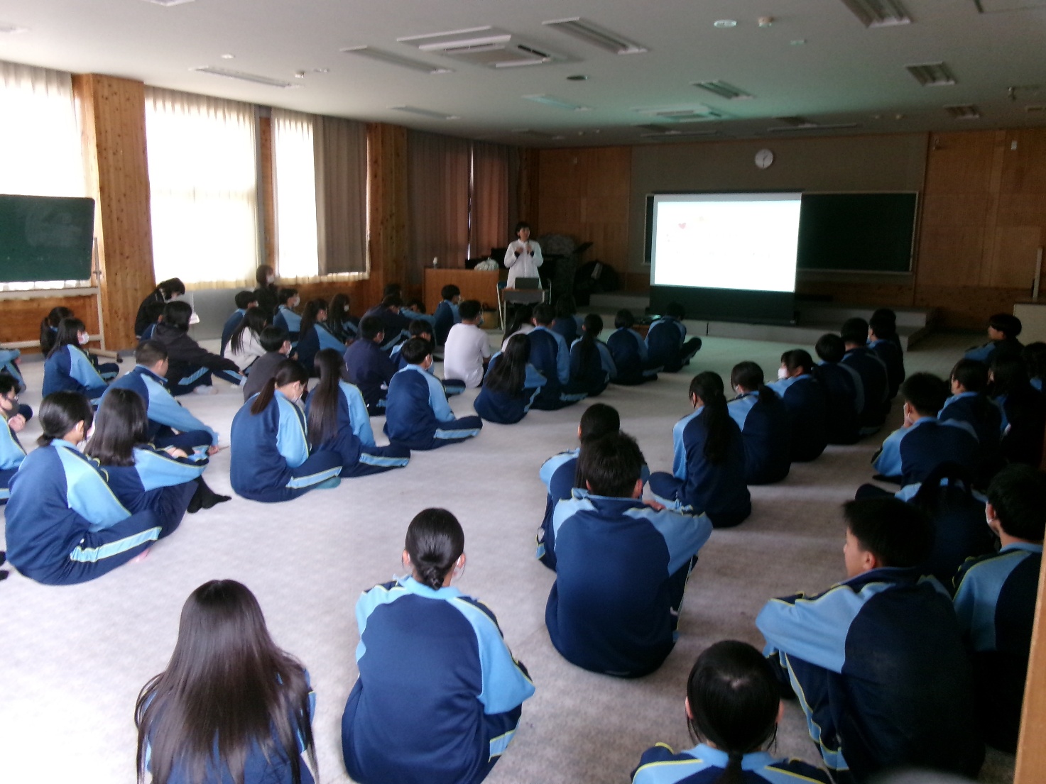 2月10日(火)、松阪市ファシリテーター・子育て支援の佐々木尚子さんをお招きし、「私たちのいのち」をテーマとした思春期教室を実施しました。授業では、「命の誕生・生命の尊さ」「体のしくみ」「性の悩み」について、具体的で分かりやすいお話をしていただきました。また、プライベートゾーンやパーソナルスペースについても説明があり、自分を大切にすること、そして相手を尊重する姿勢の重要性を学ぶことができました。