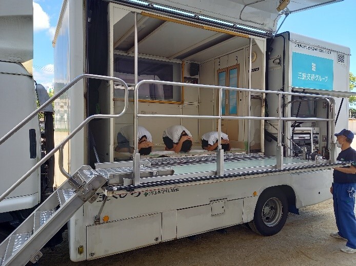 10月14日(金) 5年生が防災学習を行いました。学校では、「南海・東南海地震とそれにともなう津波」から命を守るために、避難訓練や防災学習をすすめています。 今回は、三重県教育委員会の協力を得て、起震車体験・液状化実験・防災講話を行いました。 いつ来てもおかしくない大地震と大津波。備えを怠ってはいけません。
