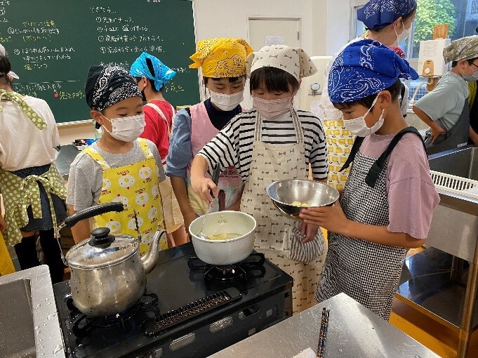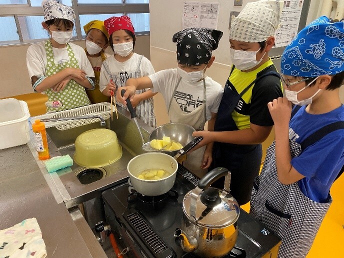 これまで家庭科では、調理実習を控えてきましたが、やっと調理実習ができました。今回は、ジャガイモ・ハム・ホウレンソウを使った炒め物です。緊張しながらも楽しく実習体験をすすめ、おいしくいただきました。