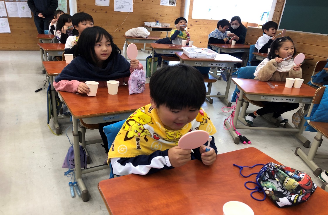 みんな薬剤で真っ赤になった歯を見てしっかり真っ白に磨いていました。