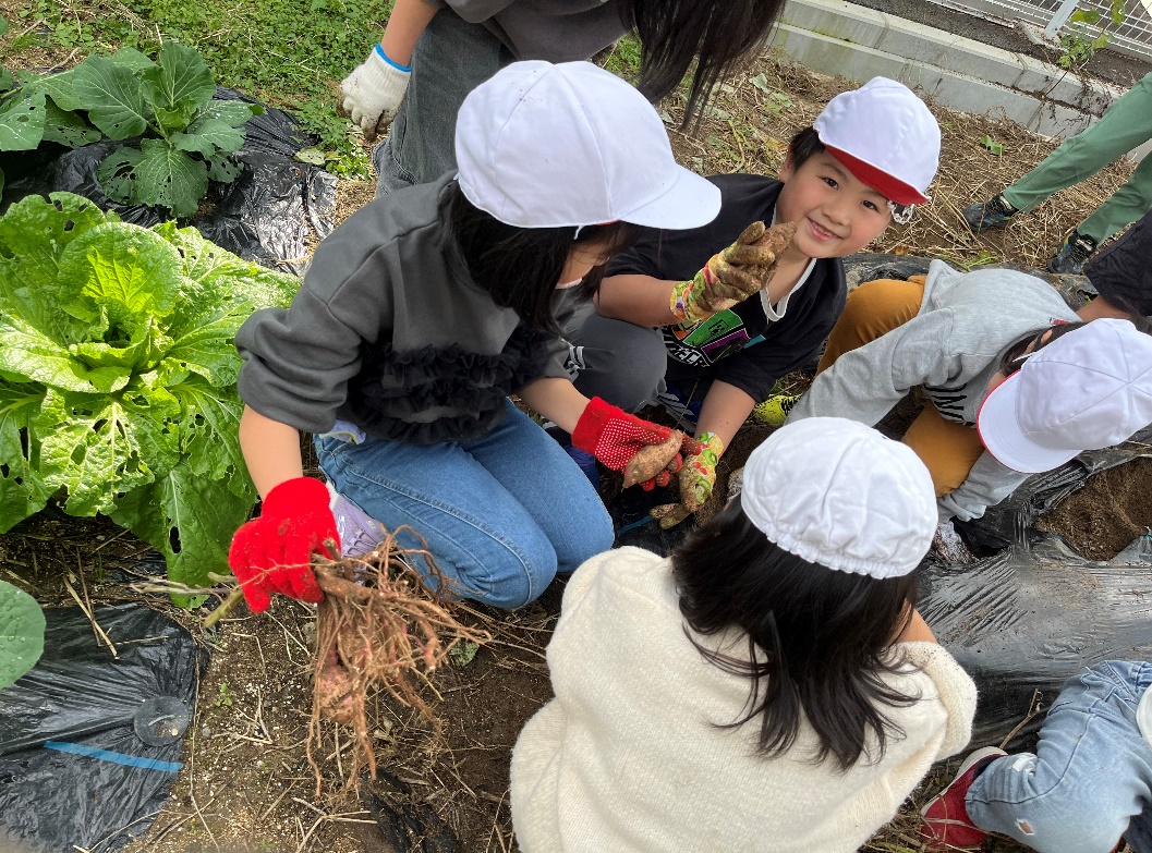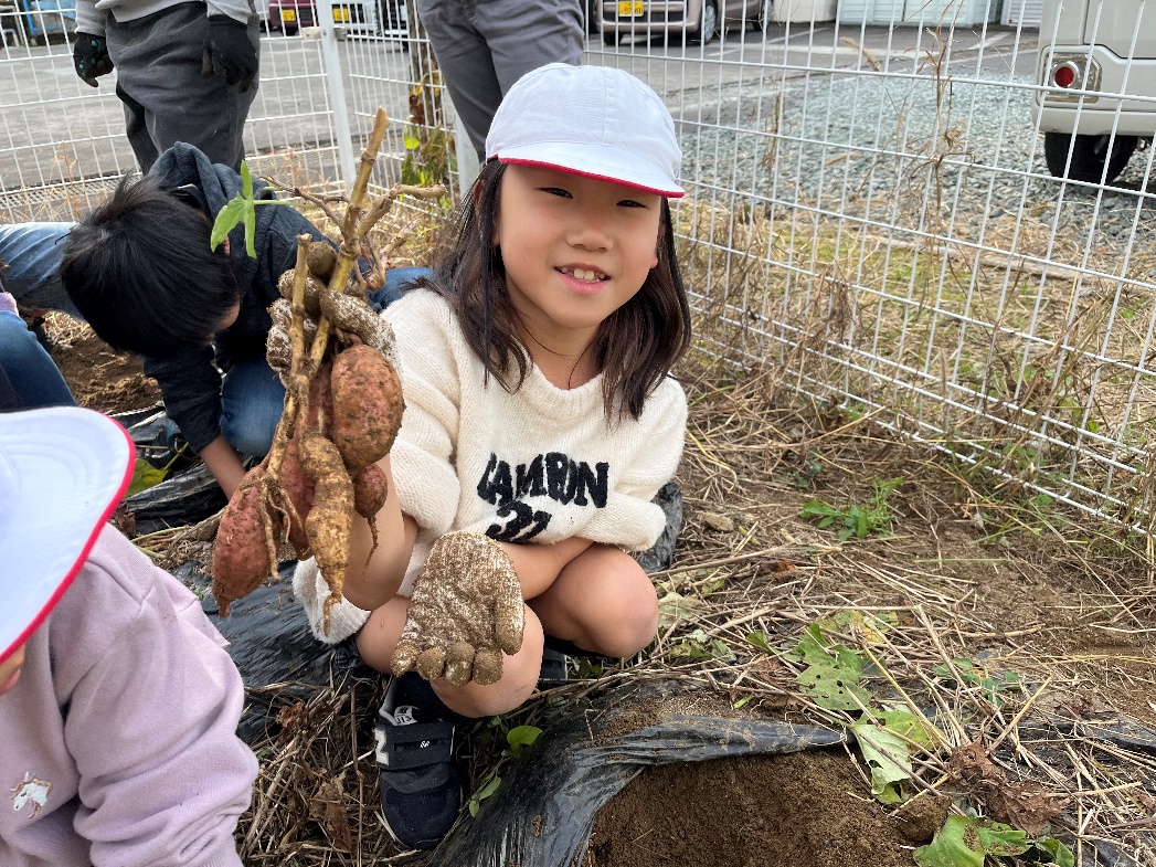 学校の畑で育てた芋の収穫でした。たくさんは収穫できませんでしたが、きびしい暑さの中、しっかり育った芋を掘り出しました。
