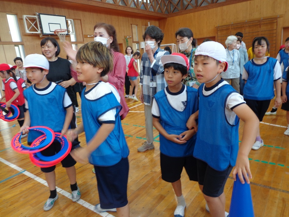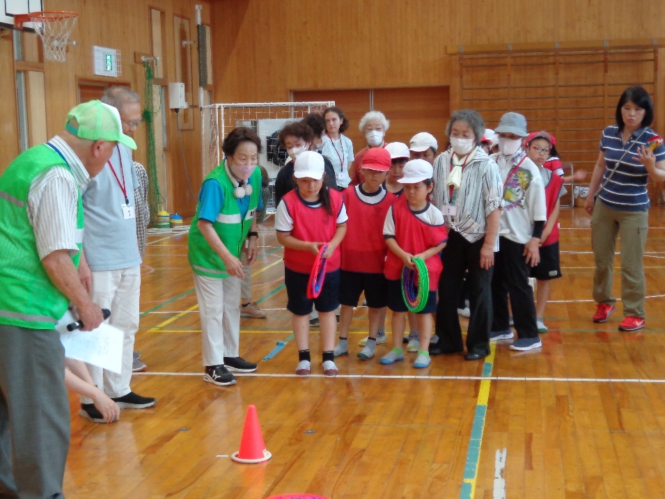 毎年、尾鷲小学校体育館で行われている「世代間交流ミニ運動会」に、