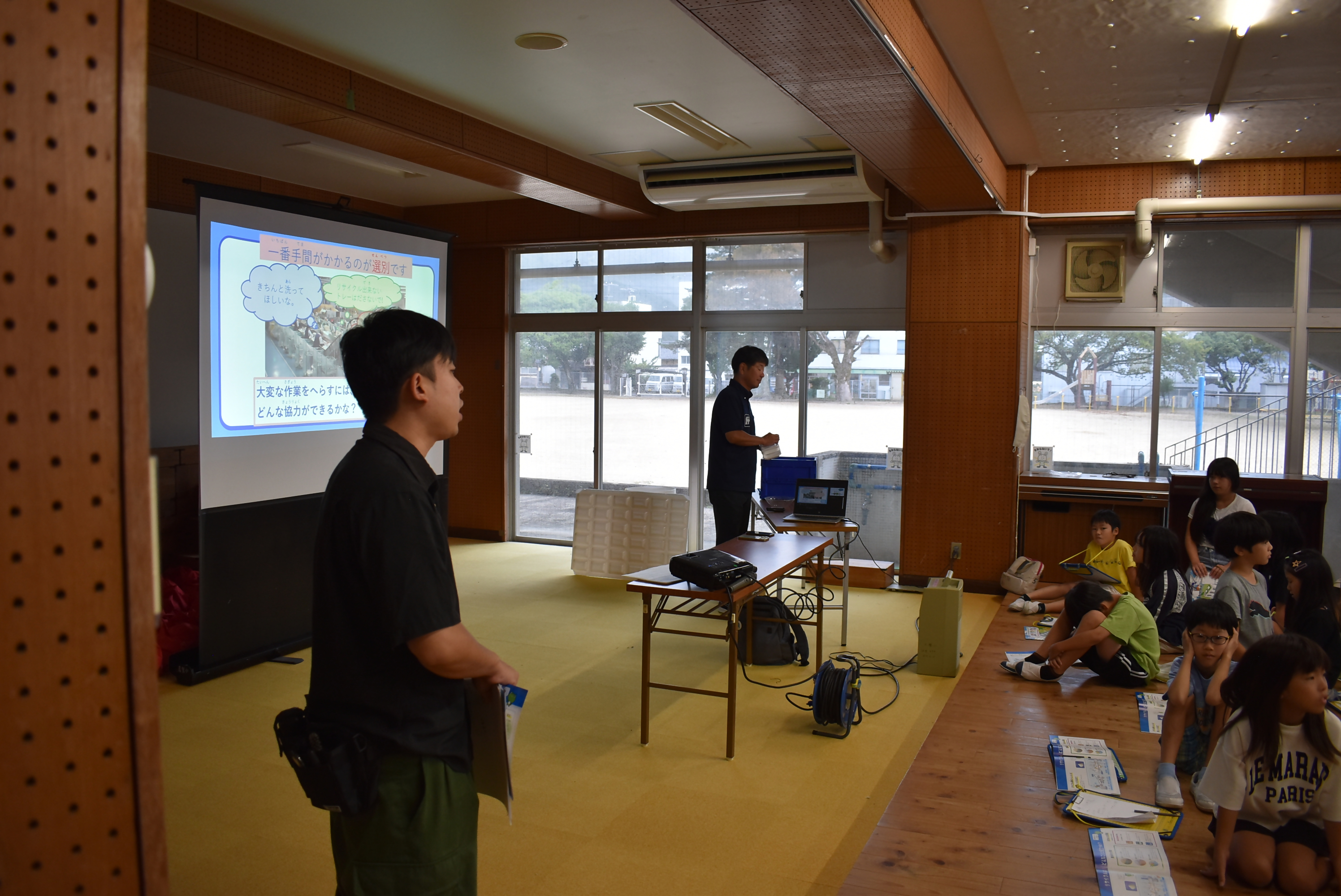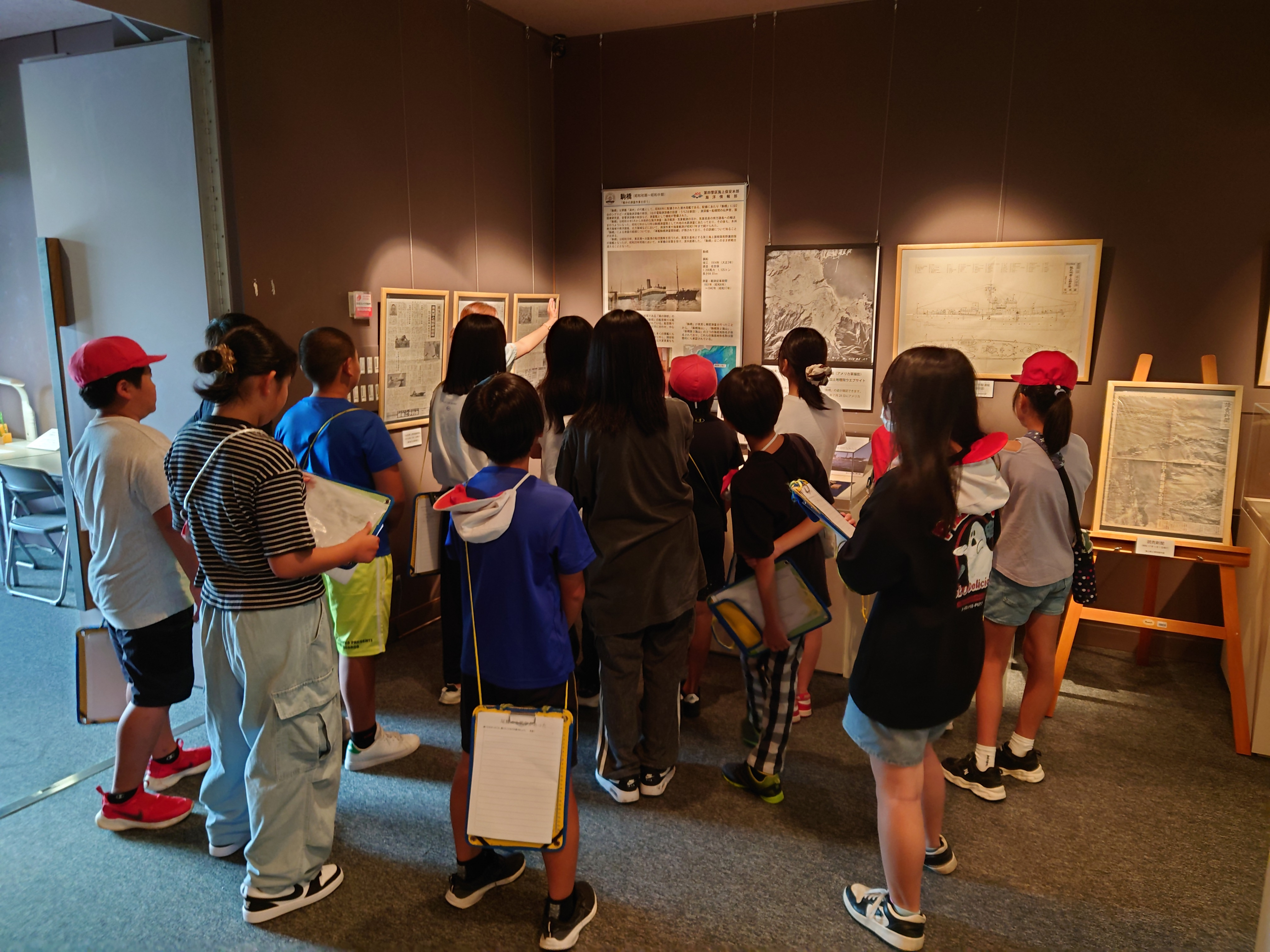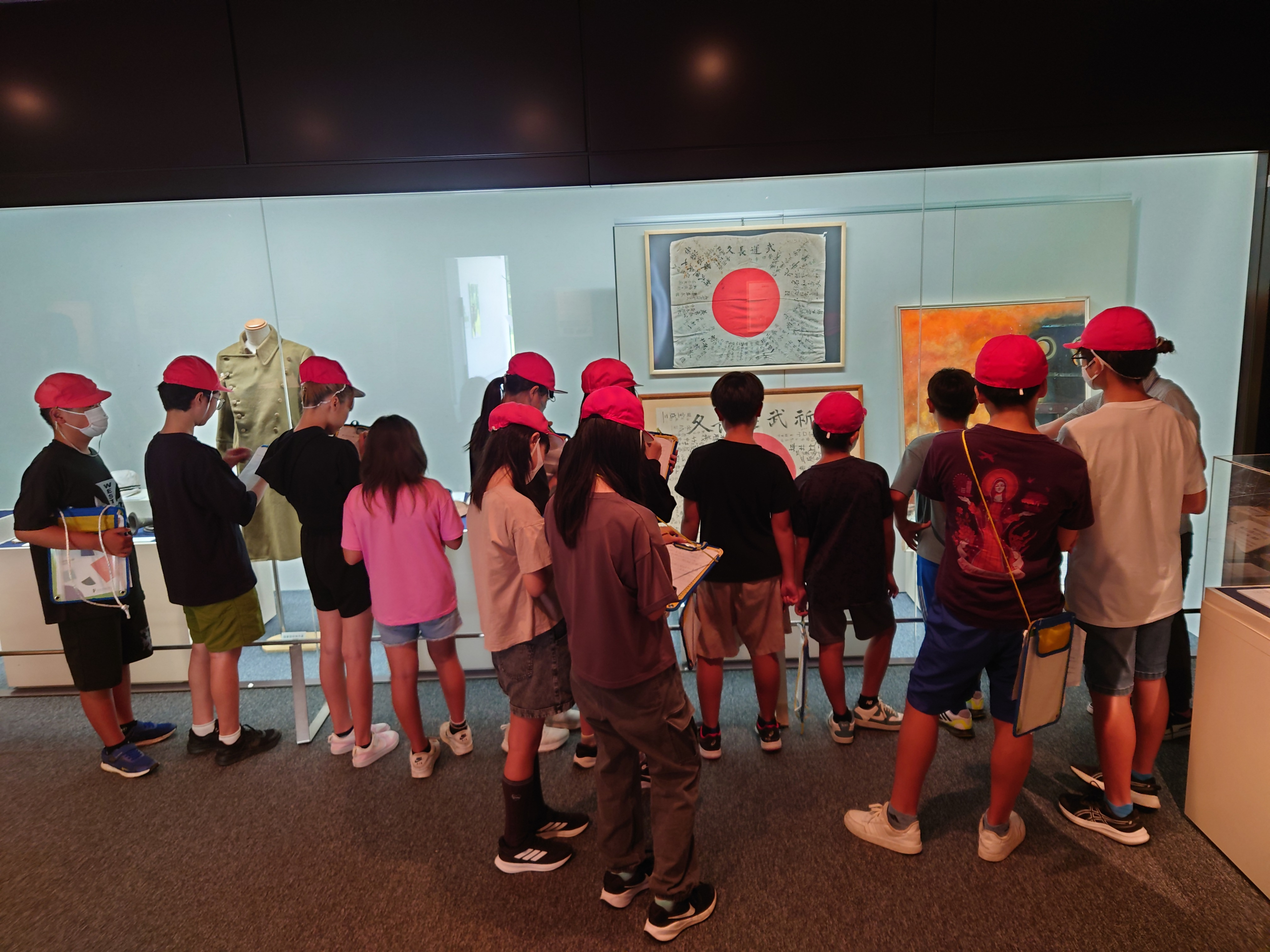 【6年生(平和学習)】三重県立熊野古道センターで行われている特別展示室企画展「終戦80年追憶の遺物」を観覧し、学習をしてきました。東紀州に残る戦争に関する資料をみて、知識・理解を深め、平和の大切さを感じました。また、センターの方々のご指導で平和の願いを込めた折り鶴も作らせていただきました。