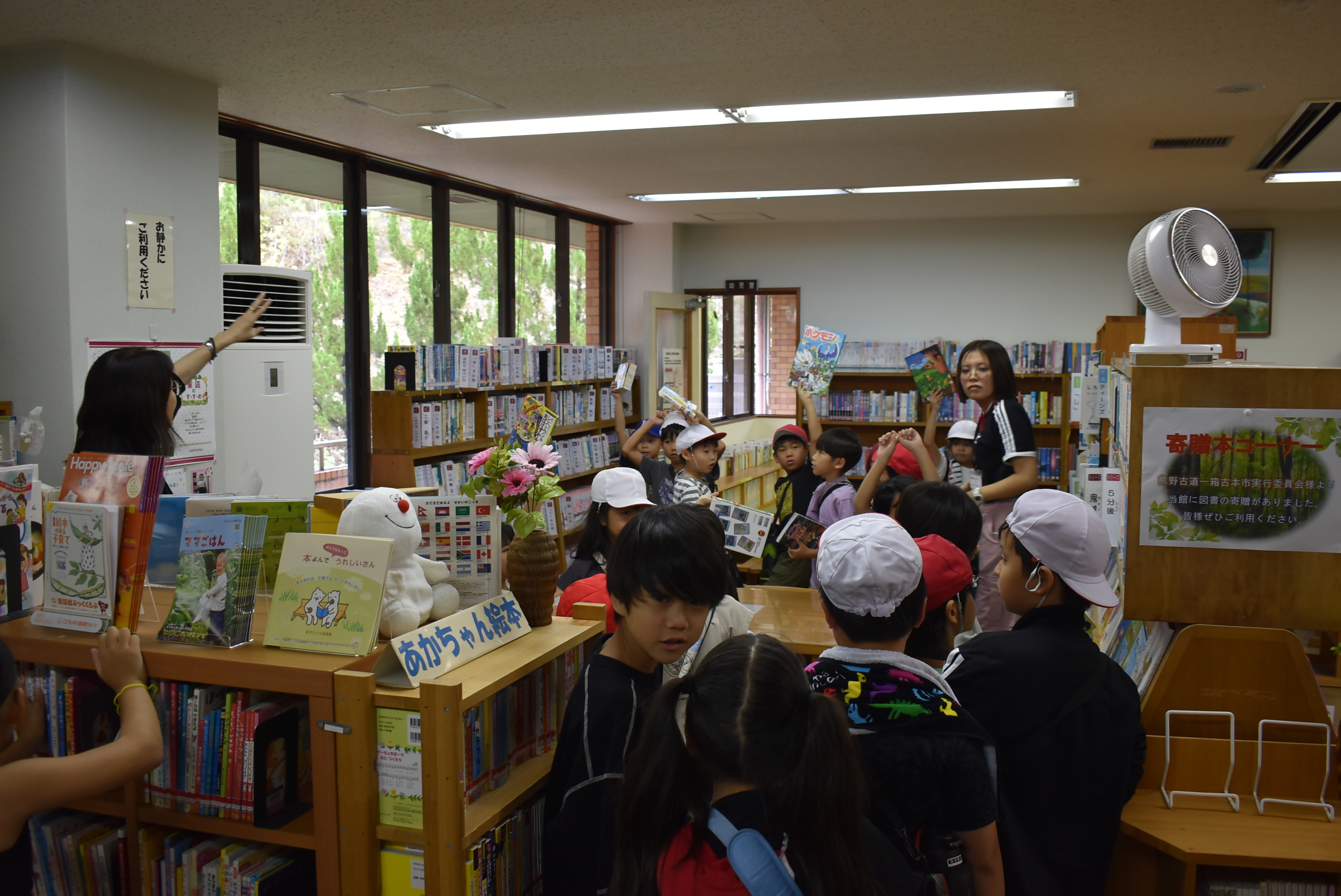 【2年生 生活科】「まちたんけん」~尾鷲市立図書館をたんけんしよう~ 尾鷲市立図書館へ行って図書館の中を探検しました。蔵書数にびっくりしたり、働く方のお話を聞いてより図書館が身近になりました。