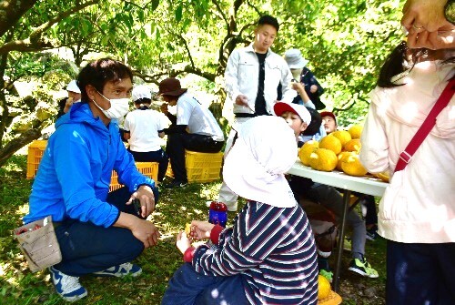 甘夏ミカンの収穫とジュースづくりを体験しました