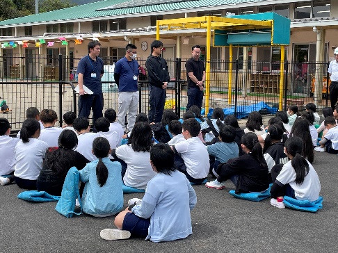 4月26日(金)、今年度第1回の避難訓練(地震・津波想定)をしました。各教室で机の脚を持って身を守った後、第三保育園横の広場まで避難しました。1年生にとっては初めての訓練でしたが、上級生と一緒にしっかり避難できました。今回、市の防災危機管理課の方々にもご協力いただき、助言・評価をいただきました。