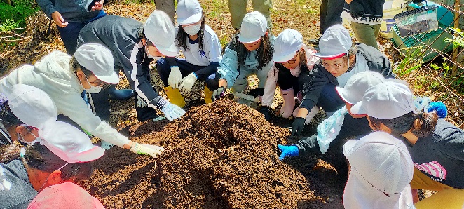 4月17日(水)、校区にお住いの西川守哉さんにお声をかけていただき、2,4年生が新田へカブトムシの幼虫を採りに行きました。土をそっと掘ると中からたくさんの幼虫が出てきました。オスメスの区別も教えていただきました。生活科や理科の学習として各学級で育てています。
