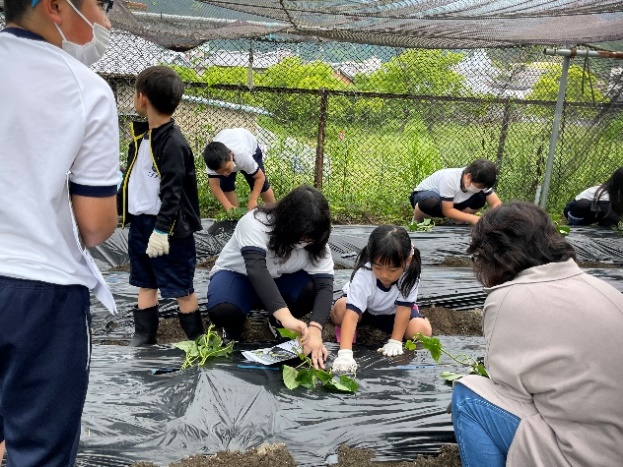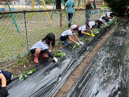 5月15日(水)、今年も児童会主催で校庭の畑にサツマイモの苗を植えました。6年生と教職員で準備をし、当日は児童会が進行を担当しました。低学年が植えるのを6年生が助けている姿がすてきでした。