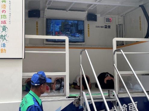 6月17日(月)、三重県防災教育推進支援事業を活用し、全校児童が地震体験車で震度5~7の揺れを体験しました。そのほか、高学年は防災に関する講話で、低学年は防災に関する絵本やかるたで、それぞれ地震にまつわる学習をしました。19日に実施した、第二保育園・第三保育園との合同避難訓練では、地震体験車での揺れを想像しながら教室で身を守り、その後桜茶屋まで避難できました。