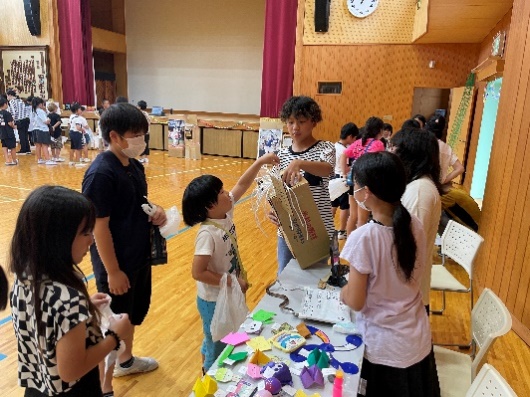 下級生は、縦割り班に分かれて順番にブースをまわりました。この時には、5年生がリーダーシップを発揮していました。
