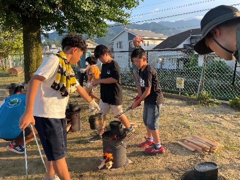 校内での宝探しウォークラリーやプールでの自由水泳、飯盒炊さん、そしてキャンプファイヤーと、盛りだくさんのスケジュールでしたが、子どもたちはてきぱきと動き、準備や後片付けもしっかりできました。
