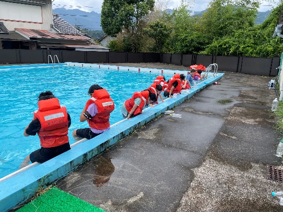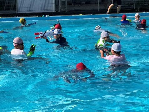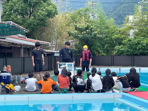 7月10日(水)、海上保安庁より2名の方を講師としてお招きし、低・中・高学年に分けて着衣水泳をしました。服を着たままで水に落ちた時の状態を確かめた後、空のペットボトルの使い方や背浮きの方法などを教えていただきました。またライフジャケットの有効性も体感しました。夏休みに海や川へ行くちきには、必ず大人の人と行くこと、自分の泳力を過信せず無理なことや無謀なことをしないことを確認しました。