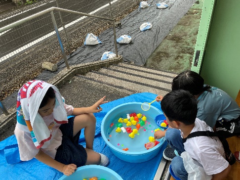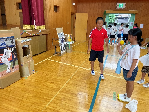 7月10日(水)、6年生主催の夏祭りをしました。6年生は、2週間ほど前から休み時間や放課後等も使って、5つのゲームを準備しました。チラシや飾りにも工夫を凝らしていたほか、手作りの景品もたくさんあって、6年生が下級生を楽しませようとする気持ちが伝わってきました。