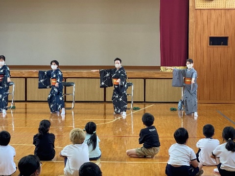 9月26日(木)、柳蛙会から5名の方をお招きし、全校種目の尾鷲節を指導していただきました。まず、踊りの振り一つひとつの意味を教えていただいたり、お手本の踊りを見せていただいたりしました。尾鷲に住む子どもたちらしく、振りや歌詞を理解して踊れるようになればと願っています。10月26日(土)の運動会では、保護者や地域の方と一緒に踊ります。