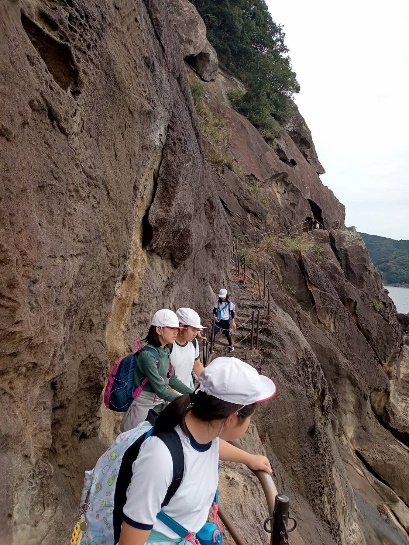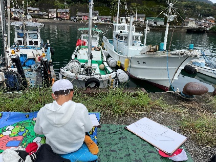 4年生は世界遺産の学習として鬼ケ城、七里御浜海岸へ。5年生は図画工作の学習として天満浦漁港で船の写生へ。