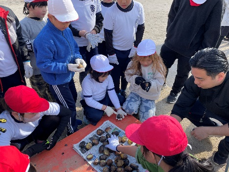 1月17日、児童会主催の焼きいも大会をしました。例年は校庭の畑で収穫したサツマイモを使うのですが、今年度は暑さとサルの影響でほとんどできませんでした。今回は焼きいも大会をやめることも考えましたが、児童会で話し合い、収穫はできなかったけれどもみんなで楽しめる児童会行事をしたいという結論が出ました。そこでジャガイモを使って試したところ、うまくできたのでこの日を迎えました。