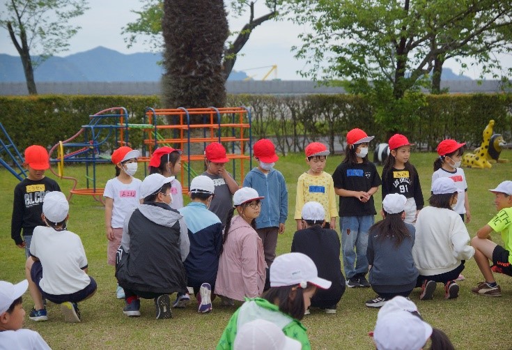 公園緑地に到着後、6年生の主催で「1年生を迎える会」をしました。1年生へのインタビューにはじまり、「じゃんけん列車」「借り人競争」「氷鬼」を全校で楽しみ、最後に6年生から1年生へのプレゼントがあり、終了しました。その後、少し早めに縦割り班でお弁当を食べたり、遊具などで自由時間を過ごしたりしました。6年生が3つのグループに分かれて、全校のみんなが楽しめるようにそれぞれの遊びに工夫を凝らしてしっかりと進めてくれるとともに、心のこもったプレゼントを準備してくれたおかげで、とても楽しく素敵な迎える会となりました。