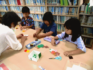 学校図書館ボランティアの東勝美さんと山下其美子さん、図書館司書の西川先生の指導で折り紙教室を1年生にしていただきました。今回は「秋」をテーマに「もみじ」や「どんぐり」や「リス」などを折り紙で作って台紙に貼り、その後、1学期の作品の台紙とくっつけて、素敵な作品を完成させました。