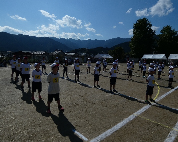 そして、給食を終え、開始時刻の12時30分。10月下旬とは思えない、日差しの強さや暑さを感じながら、青空のもと校旗返納・開会式から運動会がスタートしました。その後、準備体操、徒競走、尾鷲節、綱引き、表現運動、リレー、整理体操、閉会式と進めていきましたが、どの子どもたちも、一生懸命に、みんなと力を合わせて競技・演技・準備をし、出場しない時にはしっかりと応援もしていて、今年の運動会の目標である「全員活躍」ができた「すばらしい、思い出に残る運動会」となったと思います。