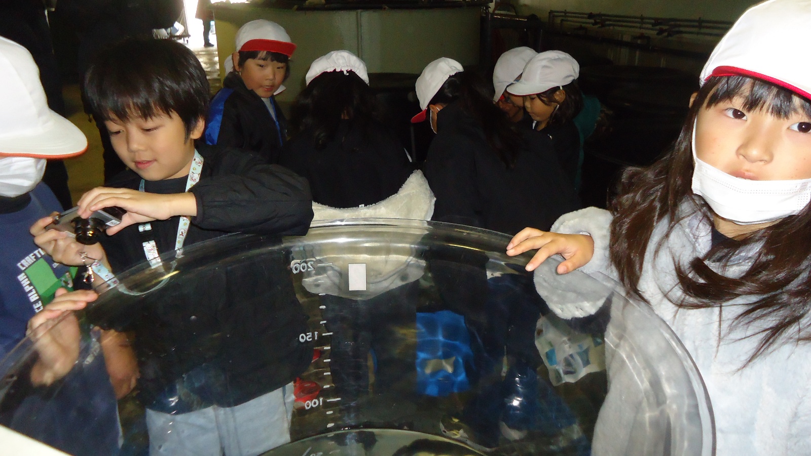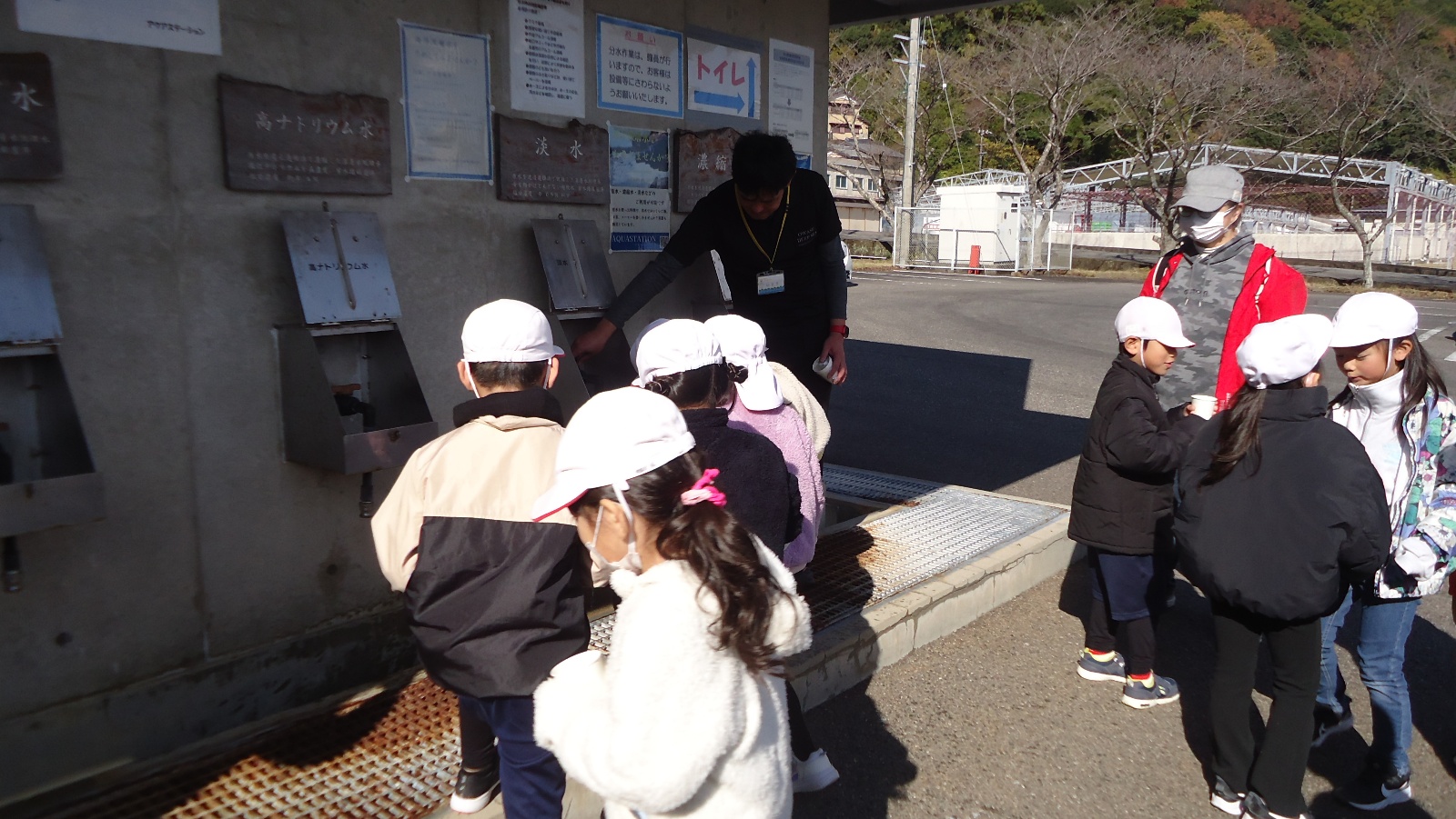 3つ目の見学場所は、アクアステーションでした。ここでは、長くて丈夫なパイプで海の底のきれいな水を取水していることを教えてもらいました。取水から海洋深層水ができるまでの過程での水(5種類)を味あわせてもらいましたが、すごくしょっぱい水もあり、おいしい海洋深層水ができるまでいろいろな工程があることを子どもたちなりに学ぶことができました。