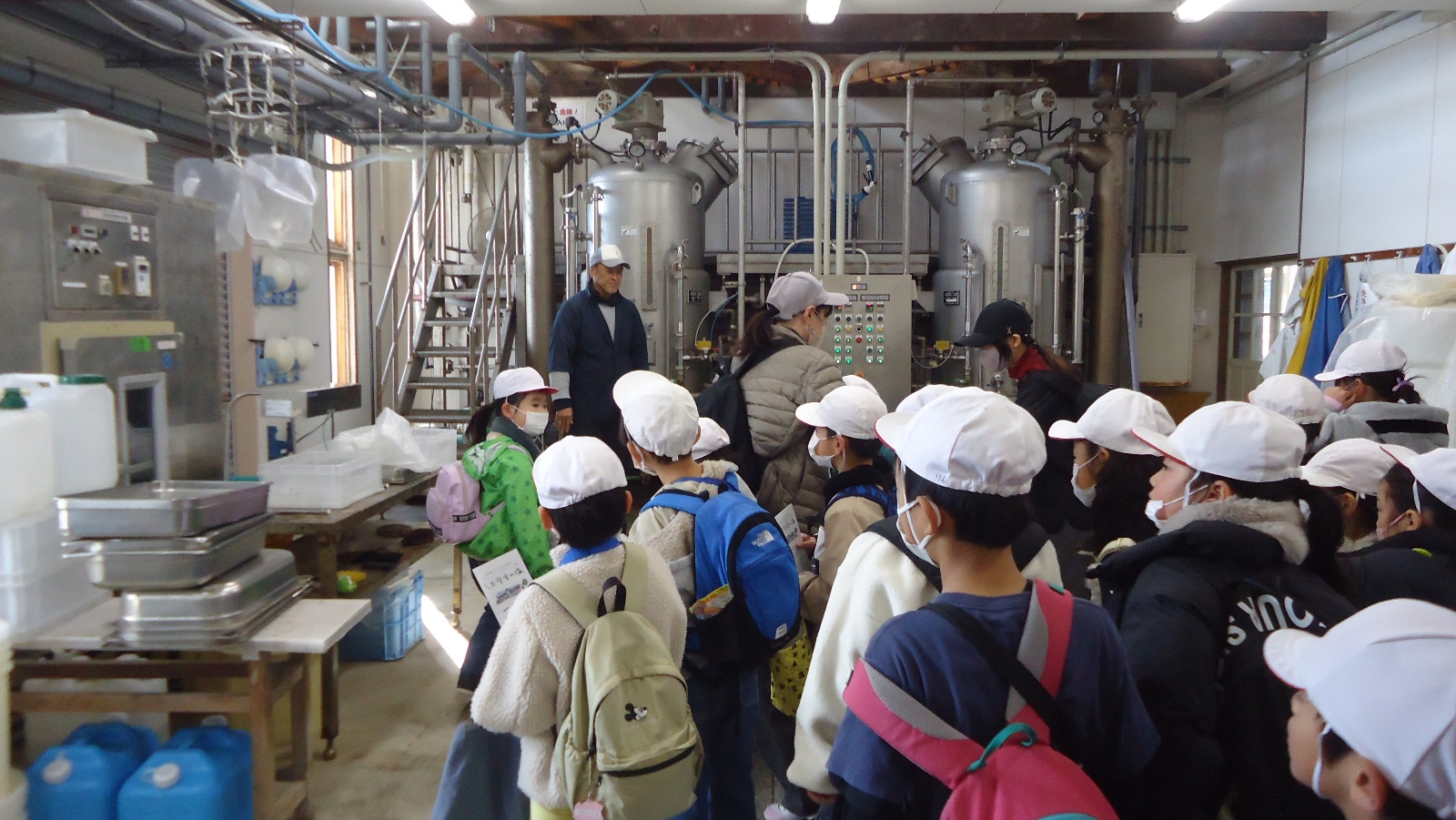 2つ目の見学場所は古江のしお学舎でした。ここでは、海洋深層水を煮詰めて塩を作っていることを学びました。