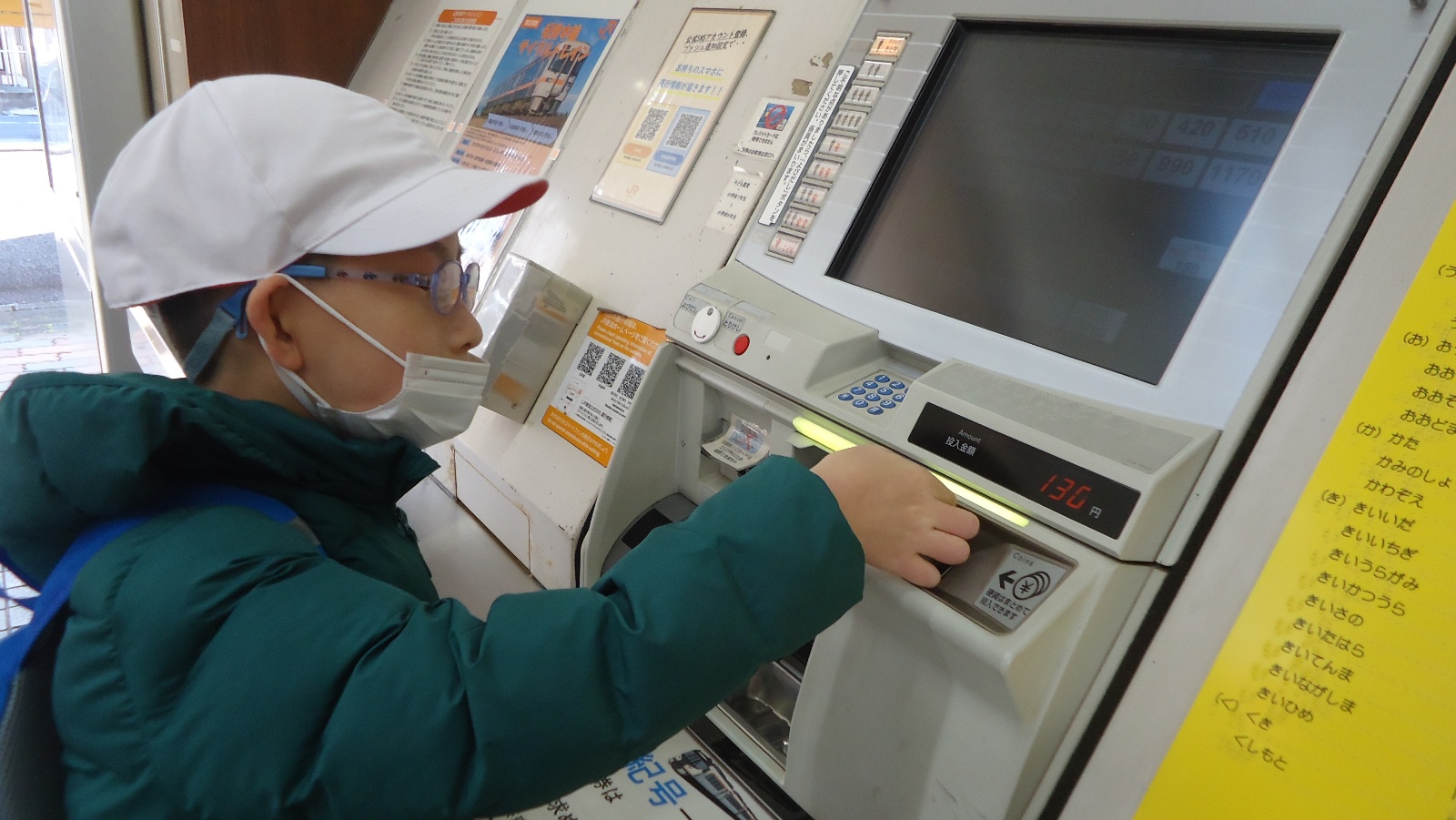 輪内地区に行きました。まず尾鷲駅では、賀田までの切符を自分で券売機で買う体験をしました。