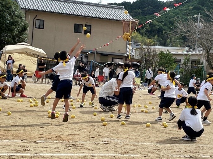 10月8日、前日の雨の影響が残ったため午後から運動会をおこないました。徒競走のほか、玉入れや綱引き、表現、リレーなどを全校児童が全力で演技し、観覧された方々から大きな拍手をいただきました。