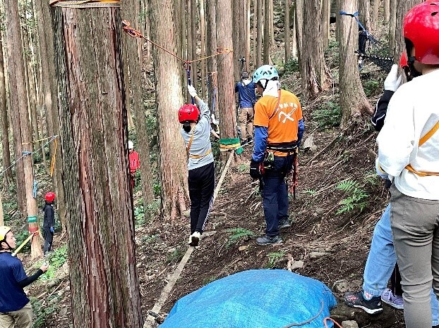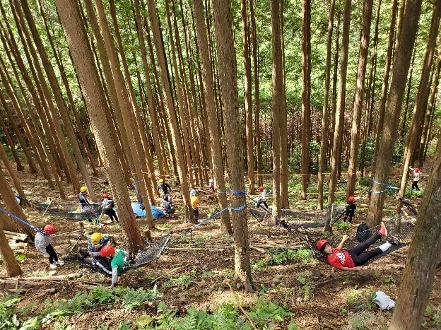 10月14日、6年生がキャンプの代替行事として市有林で野外活動をしました。市役所水産農林課様、小山ハウス様、尾鷲藪漕ぎ隊様のご協力のもと、ハンモックやスラックライン、サバイバルゲームなどを体験しました。