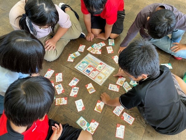 低学年は、絵本やかるた、すごろくなどを通して、楽しみながら地震や津波について学びました。