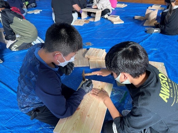 「尾鷲市小中学校木育推進事業」の一環で、尾鷲市水産農林課様・教育委員会様・小山ハウス様の指導によりヒノキの学習に取り組みました。