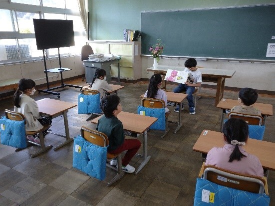 矢浜小学校では、入学式翌日の4月7日から、始業前の10分間、6年生の児童たちが、1年生の6人に絵本の読み聞かせをしています。6年生たちは、1年生に早く小学校に慣れてもらおうと、現在14人が交代で、教室までの案内や始業準備のお手伝い等をしていますが、この読み聞かせの取組もそのうちのひとつです。「本を好きになる」、「読書の習慣を身につける」ことのきっかけになってくれればうれしいですね。