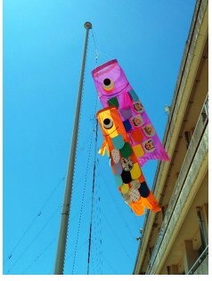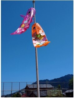 矢浜小学校の運動場のポールには、1年生6名の児童たちが図画工作の授業で一生懸命作った「こいのぼり」が元気よくはためいています。激しい流れの滝を上るがごとく、みんな元気に健やかに育ってほしいものです。