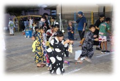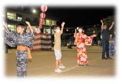 9月9日(土)の夜、今年で74年目となる矢浜地区の伝統行事「月見おどり」が、学校およびPTA主催で、矢浜小学校運動場を会場に開催されました。