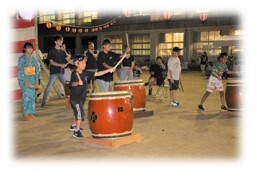 日が暮れた午後7時からは行灯にも灯がともり、いよいよ踊りがスタート。浴衣や甚平といった思い思いの衣装をまとった児童たちが、「ニッコリ音頭」や「よさこい鳴子」、「尾鷲節」といった踊りを披露し、終盤には、矢浜青年団の皆様が寄席太鼓の演奏(6年生児童4人も参加)を披露してくださり、祭りに花を添えてくれました。
