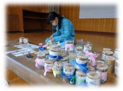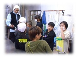 5月のヒノキ製産卵床体験、7月の稚魚観察に続いて、市水産農林課の方々にご来校頂き、日本・尾鷲の漁業についてのレクチャーを受けた後、実際にイカをさばき、お刺身と焼きそばの調理を体験しました。