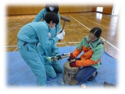 6月の「山育」で伐採した間伐材で9月に「海育」で筏を作りましたが、今回はその筏を分解した木材で、「スウェーデントーチ」を作りました。来年には地域の事業所等で、「矢浜小トーチ」として販売する予定です。