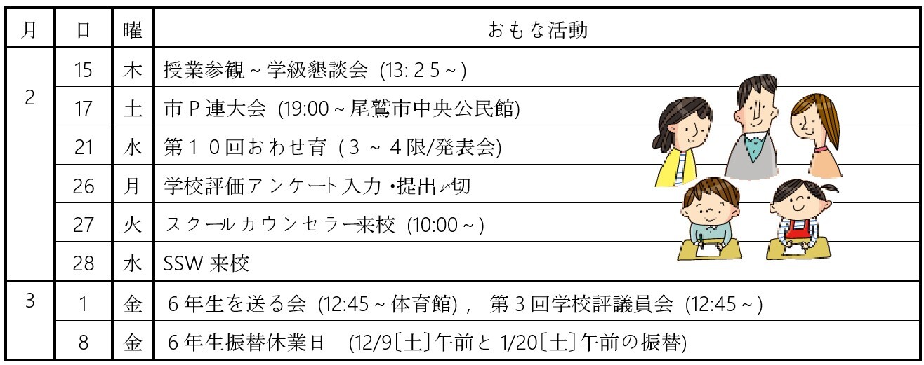 のではないでしょうか。また、地域の方々にとってみても、「地域の伝統や文化を、将来にわたってずっと守っていきたい」、「子どもたちには、良き継承者になってもらいたい」という強い思いがあるはずです。いつも書かせていただいている「体験と交流」、「社会に開かれた教育課程」の大切さが、この「山の神」の学習にも凝縮されているような気がします。今後も、学校・地域・家庭が三位一体となった子どもたちへの教育支援を、より一層お願いいたしたいと思います。